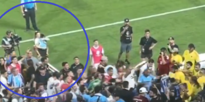 Pojavio se još jedan užasan snimak. Mina Bonino, supruga Federika Valverdea, bežala je s detetom u naručju kako bi spasila živu glavu dok su na tribine letela flaše i čaše. Ona je navodno pogođena flašom u glavu.