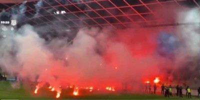 Takav rezultat izrevoltirao je pristalice Rijeke, koji su počeli da divljaju, pa je došlo do prekida meča. Hrvatski huligani su počeli da ubacuju baklje na teren kao i na tribine među navijače domaćeg tima, a onda su se potukli sa policijom.