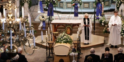 Pre nego što je kovčeg iznet iz crkve, porodica preminulog - njegov 95-godišnji otac Sven, deca Johan i Lina i udovica Janiset, položili su crvene i bele ruže.
