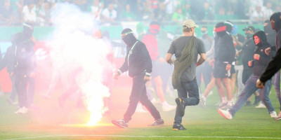 Maskirani huligani su upali na teren i sukobili se sa znatno manjom grupom navijača Austrije, što je preraslo u opštu tuču.