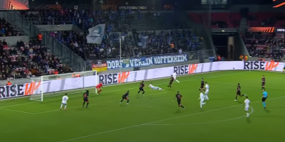Sa boka je loptu ubacio Pavel Kadežabek, a Merštet sve ispratio, a onda buuum posle akrobacije! Golčina! Golman ništa nije mogao, samo se uhvatio za glavu u šoku, a onda i njegovi saigrači i domaći navijači.