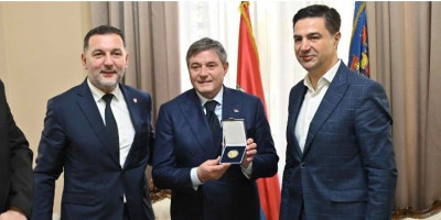 - Dobili smo pet novih terena u roku od 90 dana. To valjda nešto govori. Govori da je fudbal u fokusu i da naš grad uživa ogromnu podršku krovne fudbalske organizacije. Za teren sa hibridnom podlogom na glavnom stadionu stručnjaci kažu da je jedan od najkvalitentijih u Srbiji. Kako da ne budemo ponosni. Koristim priliku da Piksiju i momcima poželim sreću i uspeh u meču protiv Danske. Znam da će se hrabro boriti, a Nišlije će ih svim srcem bodriti do pobede. Živeo Niš, živela Srbija - poručio je gradonačelnik Niša, a potom Branku Radujku i Draganu Stojkoviću uručio plaketu u znak sećanja na posetu Gradskoj kući.