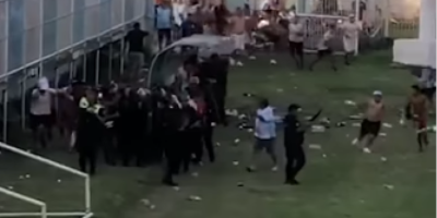 Snimci haosa, predmeta kako lete ka fudbalerima i policije kako spašava igrače kruži internetom.