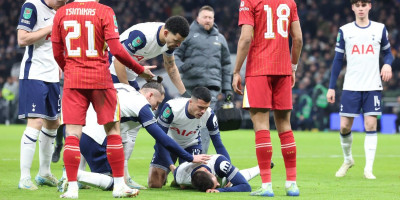 Rodrigo Bentankur doživeo je jezivu povredu vrata u ranoj fazi meča Totenhema i Liverpula u Liga kupu.