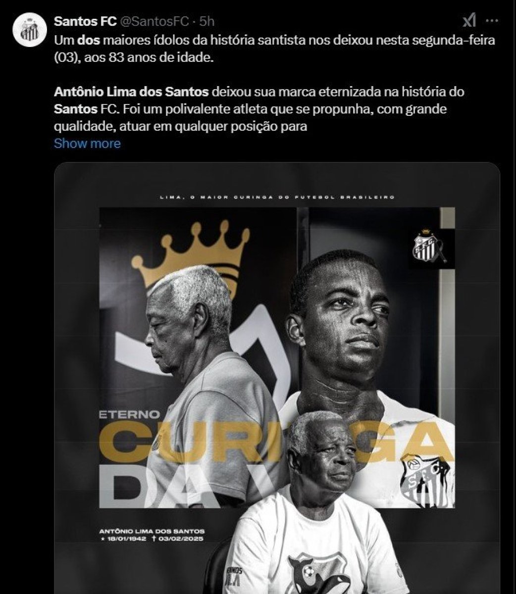 Foto: printscreen X/SantosFC