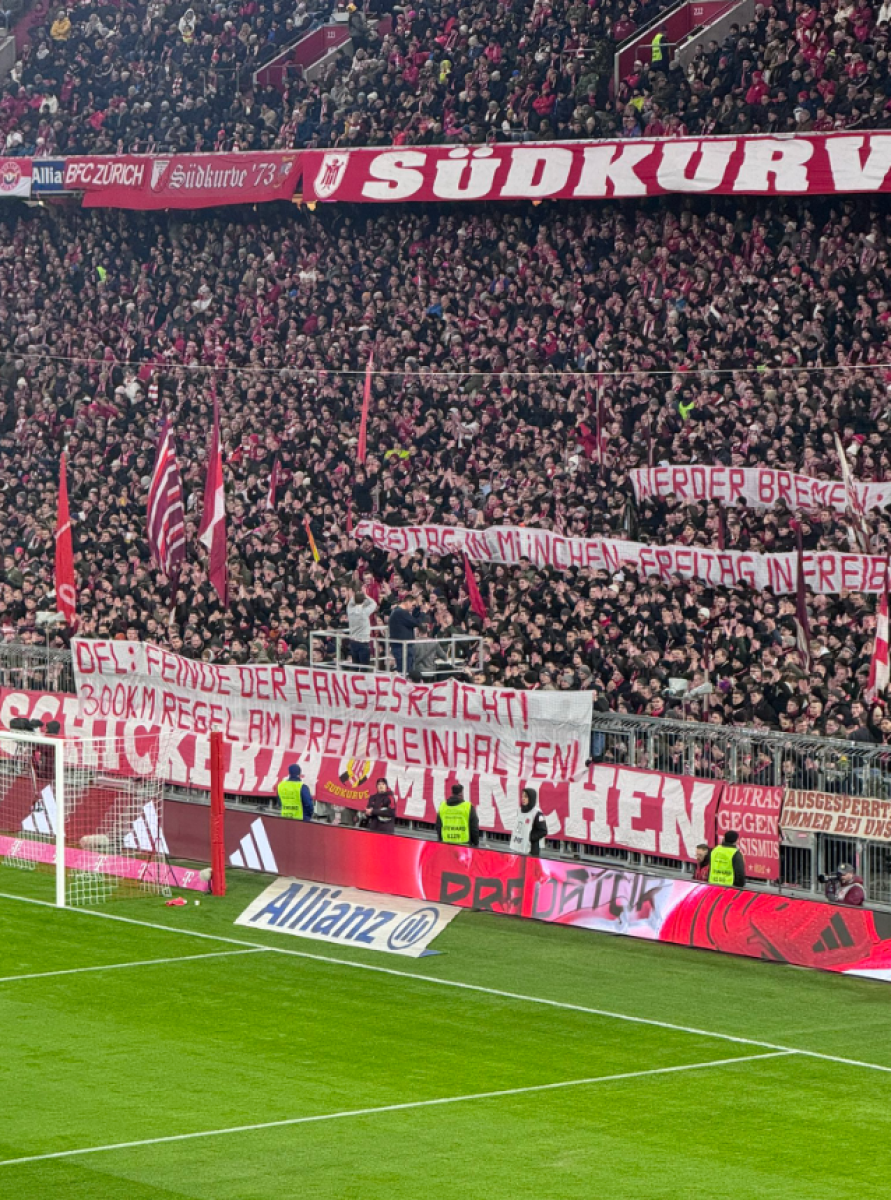 U nemačkom fudbalu vlada "pravilo od 300 kilometara". Radi se o neformalnom dogovoru kojim bi se olakšalo gostujućim navijačima da putuju tokom radnih dana. Budući da je Bremen od Minhena udaljen 700 kilometara, a da je navijačima potrebno najmanje pet sati vožnje vozom - mnogi od njih nisu mogli da dođu na "Alijanc Arenu".