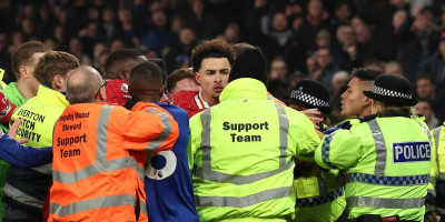 Everton je do boda protiv Liverpula stigao golom Džejmsa Tarkovskog u 98. minutu, a kako to tradicija nalaže - nakon sudijskog zvižduka došlo je do frke između igrača. U klinču su se našli Kurtis Džons i Abdulaje Dukure, vrzo su se umešali i ostali, da bi glavni sudija Majkl Oliver, kada su se tenzije spustile, počeo da pokazuje kartone.