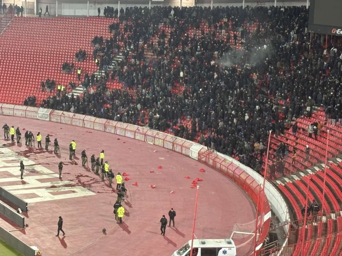 Naime, "grobari" su polomili veliki broj stolica na južnoj tribini, a određena količina je završila i na atletskoj stazi.