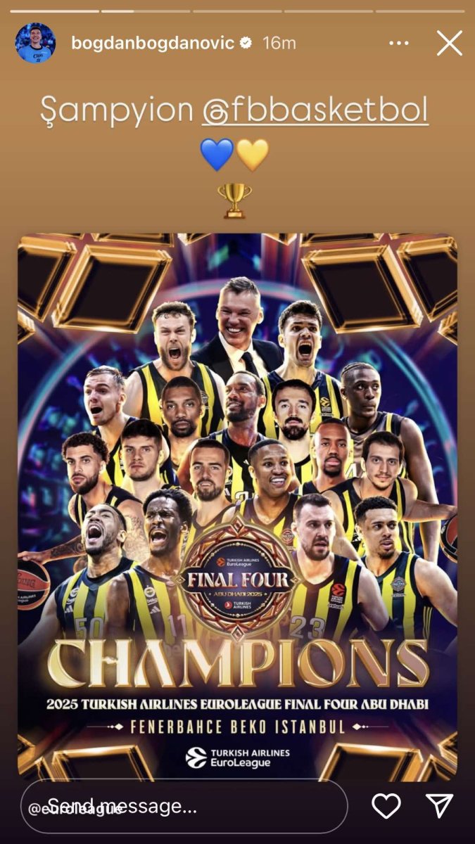 Fenerova titula obradovala i Bogdana Bogdanovića, koji je upravo iz kluba iz Istanbula otišao put NBA lige gde je i danas.