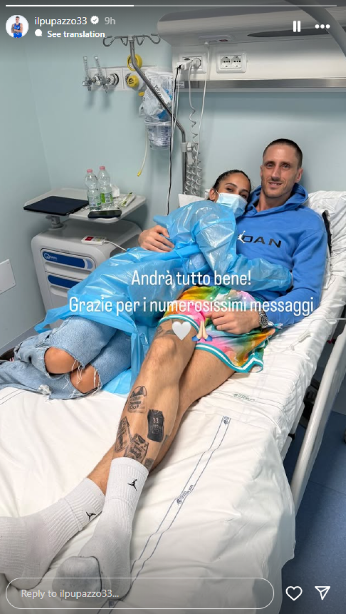 Vest o bolesti saopštio je njegov klub Virtus, a on se slikao u bolničkom krevetu zagrljen sa suprugom. Poslao je poruku svim navijačima i uverio ih da će biti dobro.
