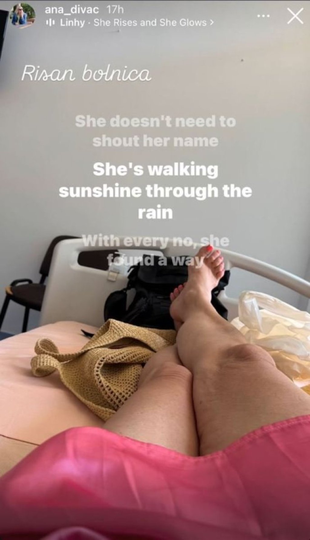 Na svom "Instagram" profilu podelila je fotografiju na kojoj se vidi kako leži na bolničkom krevetu, za koji se pretpostavlja da je u istoj sobi sa Vladom. Uz fotografiju je kratko napisala „Risan bolnica“ i dodala pesmu Linhi „Ona ustaje i sija“, čime je, čini se, želela da pošalje poruku podrške.