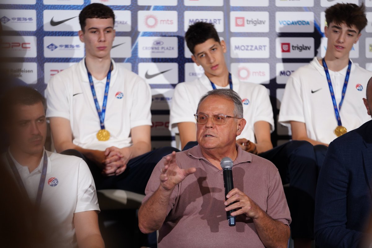 - Ovo je značajan pokazatelj i ovo što neprekidno ističemo, a ne namećemo, da je potrebna korekcija sistema takmičenja jer imamo u 16 godina, onda u 18 godina dosta dobrih rezultata, uvek se očekuje medalja. Ta medalja mora da bude obavezno zlatna, nije važna koje je godište, nije važno da li si pustio juniore na Balkanijadi sa seniorima, treba da budeš prvi. Nama je pokazatelj da posle 18 godine, u periodu koji dolazi nakon toga ta deca koja su talentovana, koja imaju perspektivu dobijaju minutažu. Zato se trudimo da postavimo neke stvari malo drugačije uvažavajući kompletan sistem jer nećemo doveka moći da imamo 10-12 stranaca u našim ekipama. Čestitam im, znam šta su prošli. Kao Savez smo se potrudili da obezbedimo sve uslove koje su zahtevali i koje smo postavili po planovima. Čestitam ovim momcima i kažem da je ovo prvi, važan korak u svojoj karijeri. To treba da bude odskočna daska za sve dalje, to mora da bude zasnovano na velikom radu, koncentraciji. Imaju talenta da odu u vrhove svetske košarke. Deco, čestitam, kako ste se borili, kako ste se ponašali i kako se predstavljali zemlju. Bilo je zadovoljstvo videti kako ste izvodili himnu, kako ste slavili sa zastavom, svaka čast na tome i čestitamo.