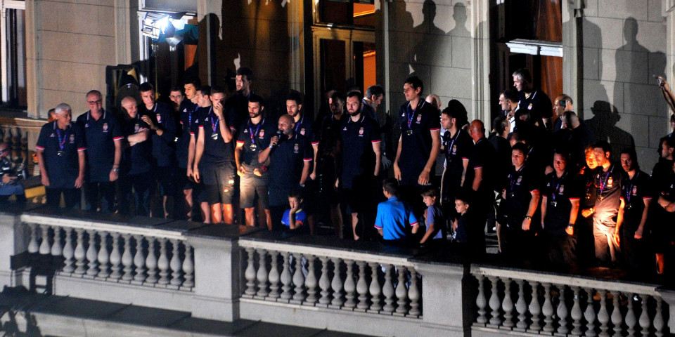 - Hvala na podršci, vetar u leđa koji nam je trebao da dođemo do medalje. Hvala ovim momcima, ovo je 12 legendi srpske košarke, 12 legendi svetske košarke. Medalje oko vrata su zaslužili. Ja sam najponosniji Srbin na svetu. Hvala ovim momcima, čine me ponosnim i presrećnim. Kao što smo obećali da ćemo se vratiti sa medaljom, tako vam sada obećavam da ćemo se za četiri godine, sa narednog EP opet videti na ovom balkonu.