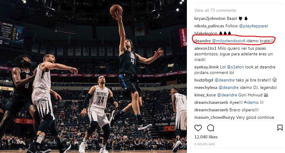 Milošu Teodosiću je na maestralnoj partiji među prvima čestitao saigrač Deandre Džordan i to na srpskom jeziku.