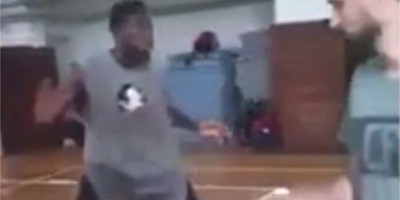 Nekoliko trenutaka pre samog pada Odža na parket, kamera je snimila Nigerijca kako trenira...