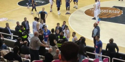 Picabaralla entre els aficionats del Buducnost amb el jugador Justin Cobbs.