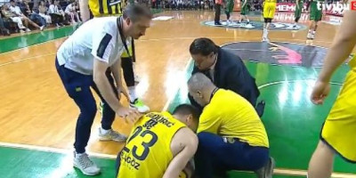 On je prilikom pada na parketu povredio koleno. Još uvek nije poznato koliko je ozbiljna povreda.