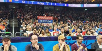 Na tribinama berlinske dvorane preteženo se vijore francuske i španske zastave, ipak ima i naših trobojki.