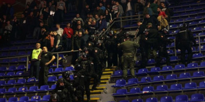 Isto se nastavi i kada je meč počeo, a jedno momentu navijači su predmetima gađali sudije.