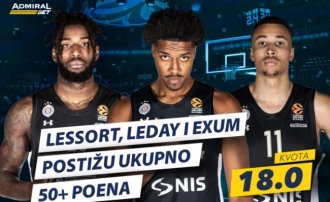 Osim timskih statistika koje su izašle još juče (savetujemo recimo Partizan više od 9.5 trojki na kvotu 1.95), ima oklada na baš jake kvote. Kao i obično, u miksu LeDej (u fantastičnoj formi), Panter i Lesor su na kvoti 18, ako postignu ukupno 50+ poena.