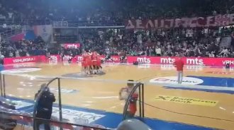 Nakon toga na parketu su se našli i igrači Crvene zvezda, a u hali je bilo sve glasnije.