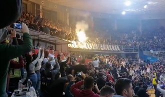 Navijačko nadmetanje traje već neko vreme, a pristalice Partizana su na deset minuta pred početak utakmice napravili bakljadu na svom delu tribine.