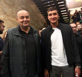 Pružili su ruku jedan drugom ruku, pozdravili se uz osmeh i malo proćaskali, a onda je svaki u svom društvu nastavio da prati dokumentarni film "Gru tu je" posvećen tragično nastradalom repreru, koji je bio veliki navijač Partizana i redovno je pratio mečeve košarkaša crno-belih u "Pioniru".