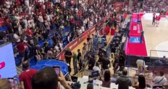 Posle nekoliko minuta delovalo je da se situacija smirila, ali onda je deo navijača domaće ekipe želeo fizički da se obračuna sa nekim od košarkaša Partizana, pa je moralo da reaguje obezbeđenje.