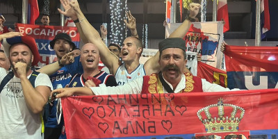Zaorillo se ispred dvorane himna naše države, a navijači su digli zastave u vis i pevali na sav glas.
