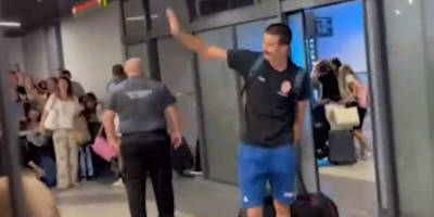 Okupio se veliki broj navijača na aerodromu "Nikola Tesla" kako bi dočekali srpske košarkaše koji se vraćaju sa Mundobasketa sa srebrnom medaljom. Doživeli su navijači i veliko iznenađenje kada se pred njima pojavio Strahinja Stojačić.