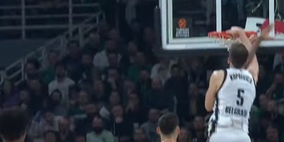 Srpski centar dobio je pas Pi Džeja Doužera i, nakon što je odličnom varkom izbacio iz igre Kostasa Slukasa, ustremio se na obruč i zakucao loptu preko nemoćnog Kostasa Adetokumba.
