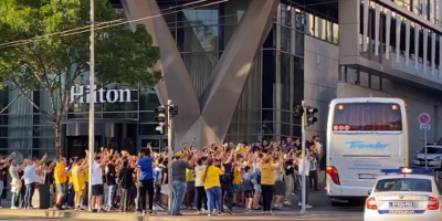 Kada je autobus sa igračima Makabija stigao ispred Hiltona, dočekala ih je ogromna masa ljudi u žutim dresovima. Odmah su počela da se pevaju navijačke pesme kluba.