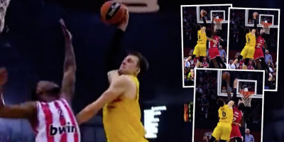 Nekadašnjem košarkašu Partizana, a sad članu Barselone Janu Veselom učinilo se u deliću sekunde da ima otvoren reket i put ka košu Olimpijakosa. Češki reprezentativac, koji ima izuzetan odraz, krenuo je u karakterično zakucavanje, ali onda ga je dočekao Mozes Rajt!
