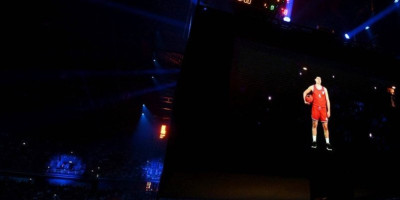 Na parketu se pojavio hologram Dražena Petrovića, izazvavši lavinu emocija među prisutnima. Dražen je tapkao loptu, kao nekad, a zatim se obratio publici, izgovarajući nekoliko rečenica koje su mnogi doživeli kao lični oproštaj od voljenog idola. U tom trenutku, suze su preplavile lica mnogih navijača u dvorani.