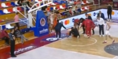 Navijači u Železniku prisustvovali su stravičnoj sceni na meču između FMP-a i Cedevita Olimpije kada je Žiga Daneu pao na glavu.