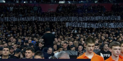 Pristalice Partizana su na svoj način odlučili da se oproste od svog saborca sa tribina, pa su istakli transparent: