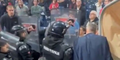 Naime, kod tunela, dok je napuštao teren, manja grupa navijača prozivala je sportskog direktora crveno-belih Milana Dozeta. Usledio je verbalni dijalog, ali sve se srećom završilo samo na tome.