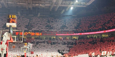 Tako je i ovoga puta u Beogradskoj areni. Pripadnici "delija" i "Gejt 7" su zajedničkom akcijom "obojile" velelepnu dvoranu na Novom Beogradu u crveno-bele boje.