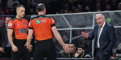 Košarkaši Partizana i Željko Obradović na prvom ABA derbiju ove sezone