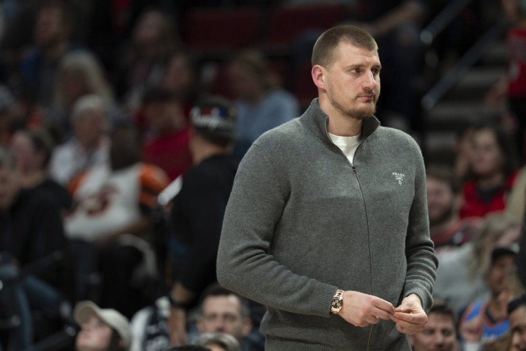 Najbolji košarkaš sveta Nikola Jokić nije mogao da igra jutros za Denver na gostovanju u Oregonu ekipi Portlanda, a meč je ispratio u civilu na klupi sa svojim saigračima.