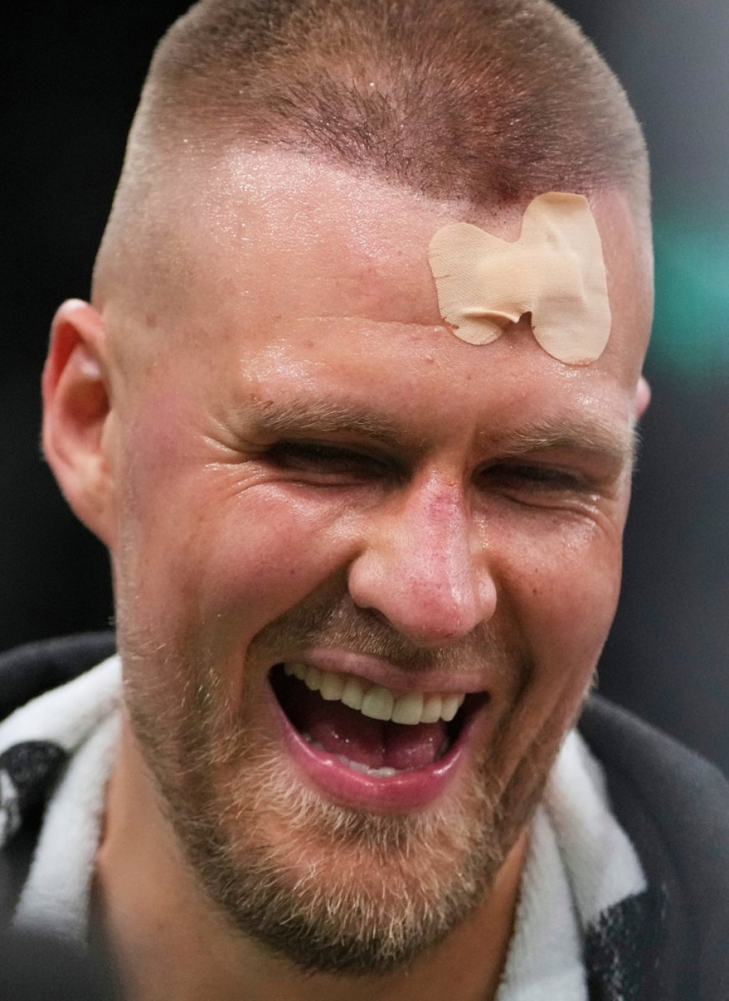 Ubrzo se pridigao, i nasmejan napustio teren. Iako je delovalo da se neće vraćati u igru, Letonac je ubrzo ponovo bio na parketu i to sa pet šavova i flasterom nasred čela. Utakmicu je okončao sa 20 poena i deset skokova, a njegov Boston došao je do pobede od 109:100 i poveo sa 2:0 u prvoj rundi plej-ofa Istočne konferencije.
