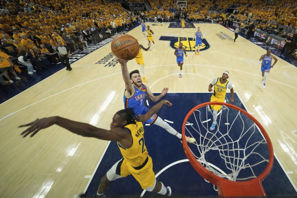 Oklahoma se u prošlom meču vratila u život, ali su Pejsersi opet poveli u seriji. Najzaslužniji za trijumf Pejsersa bio je Benedikt Maturin, koji je ubacio 27 poena, Tajris Halibarton dodao je 22 poena, 11 asistencija i devet skokova, dok je Paskal Sijakam postigao 21 poen.