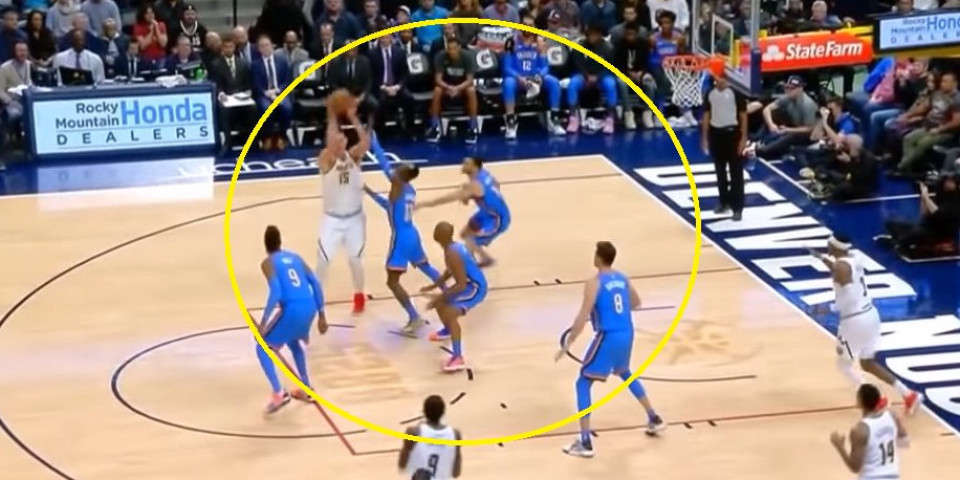 Jokić je imao mismeč situaciju sa Denisom Šruderom to su videli Abdel Nader i Kris Pol, pa su i oni prišli, Danilo Galinari je gledao ka Somborcu i zaboravio na Torija Krejga, a Nerlens Noel je zapostavio Džamala Mareja u rotaciji na šutu za tri i čuvao je reket. Nikola je video svog saigrača i sjajno ga uposlio za lake poene.