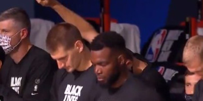 Jokić je na terenu izašao u majici na kojoj je pisalo "Black Lives Metter" i kada je počelo intoniranje himne Amerike srpski košarkaš je kleknuo na parket zajedno sa svojim saigračima.