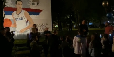 Pokuševskog su dočekale komšije, prijatelji, rodbina... Mladi košarkaš je bio u neverici, odjekivala je i pesma „Igraj i pobedi“, na kraju je ugledao i mural sa svojim likom u dresu Srbije.