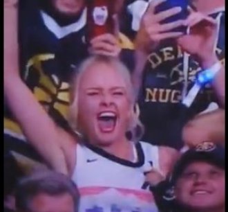 Odmah je krenulo veliko slavlje na terenu, a i na tribinama, međutim šou je ukrala Jokićeva supruga Natalija.