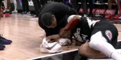 Jezive scene u NBA ligi! Košarkaš Los Anđeles Klipersa Norman Pauel (30) hitno je morao da napusti igru, jer je nakon udarca završio na parketu krvavog lica.
