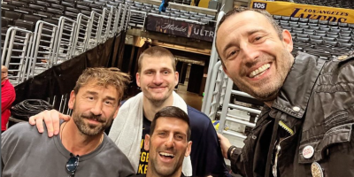 Pao je bratski zagrljaj sa Nikolom posle meča, a onda se slikao i sa trenerom Nagetsa Majkom Melounom i Sašom Vujačićem. Nole je okupio Srbe u Americi. Tu je bio i naš legendarni košarkaš Marko Jarić i proslavljeni srpski glumac koji radi u Sjedinjenim Američkim Državama Nikola Đuričko.