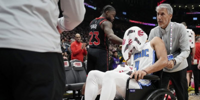 Pred kraj druge četvrtine, pri rezultatu 58:41 za Orlando tokom napada Toronta, Sags je pošao da ukrade loptu, ali je samo pao na parket.