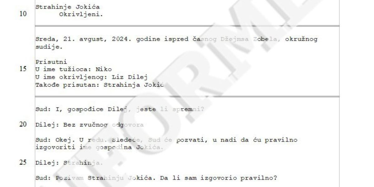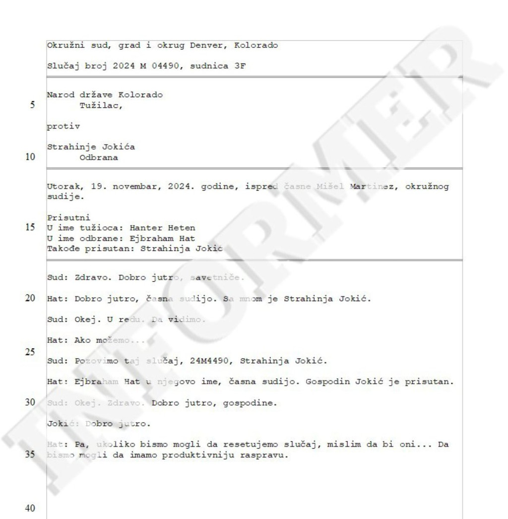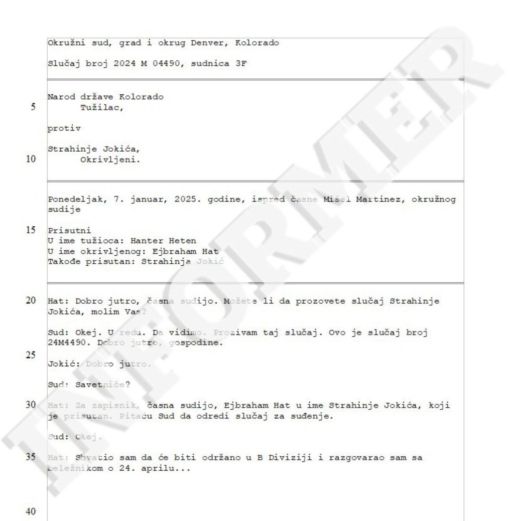 Ovoga puta, portal Informer je došao u posed transkripta sa tri ročišta Okružnog suda u Denveru, 21. avgusta 2024, 19. novembra 2024. i 6. januara 2025. godine.